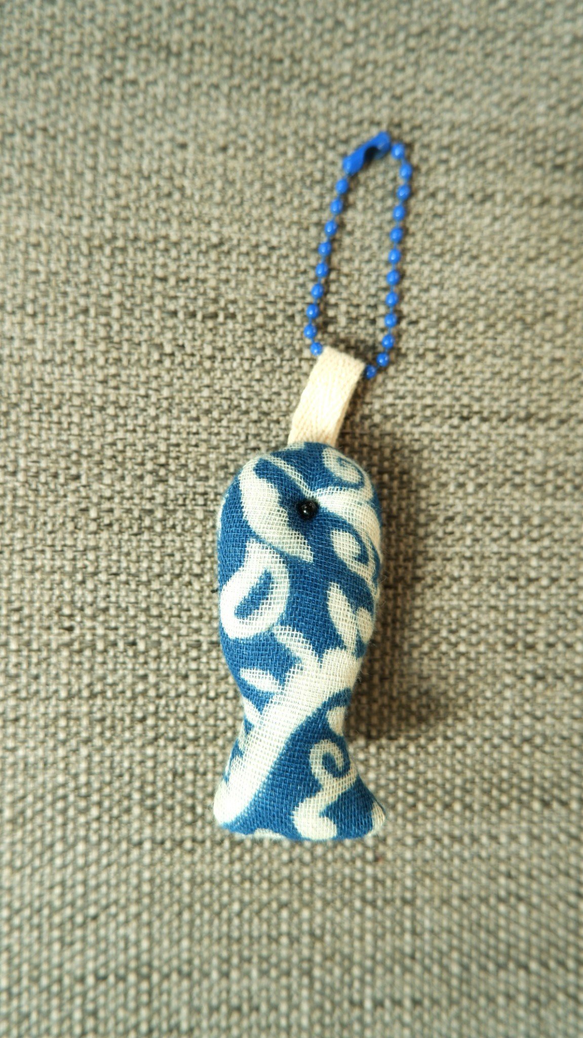 พวงกุญแจผ้า ปลาน้ำเงิน สายน้ำเงิน