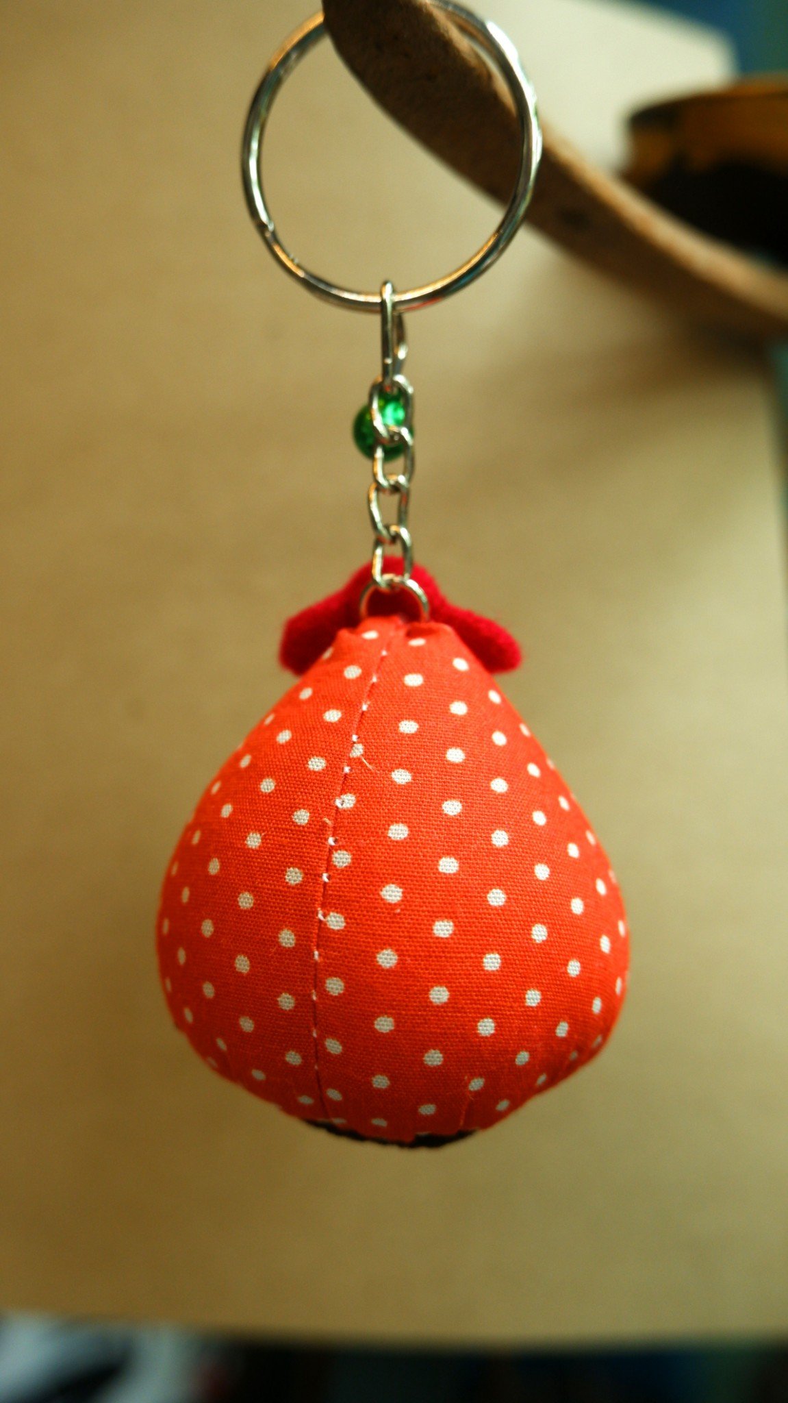 พวงกุณแจไก่ผ้าลายจุด-ส้ม