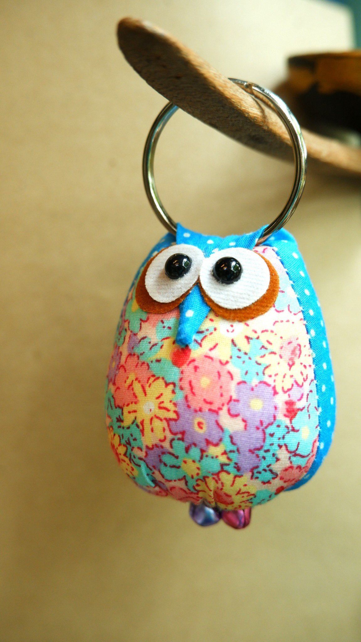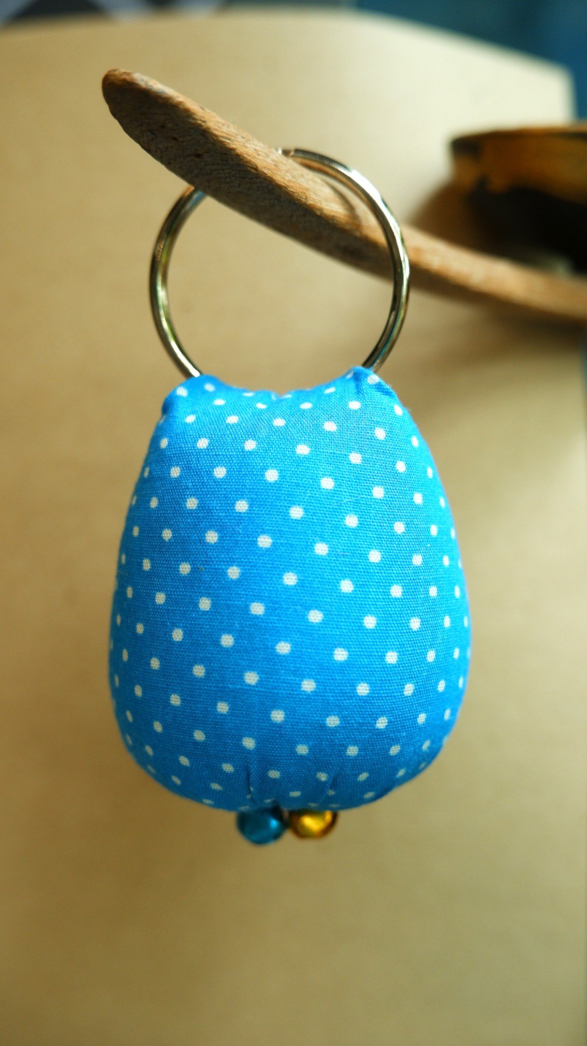 พวงกุณแจนกฮูกผ้าลายจุด-ฟ้า