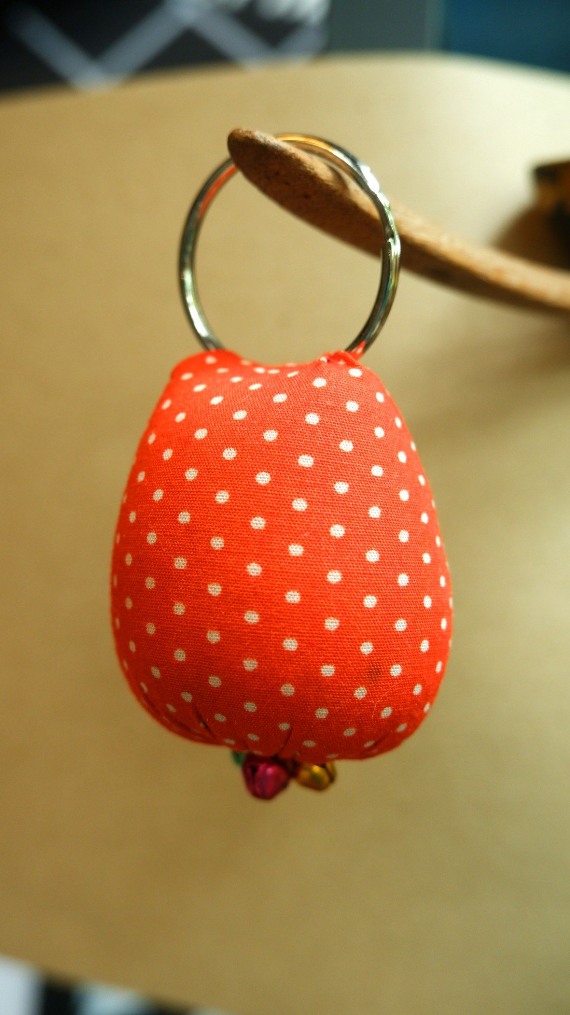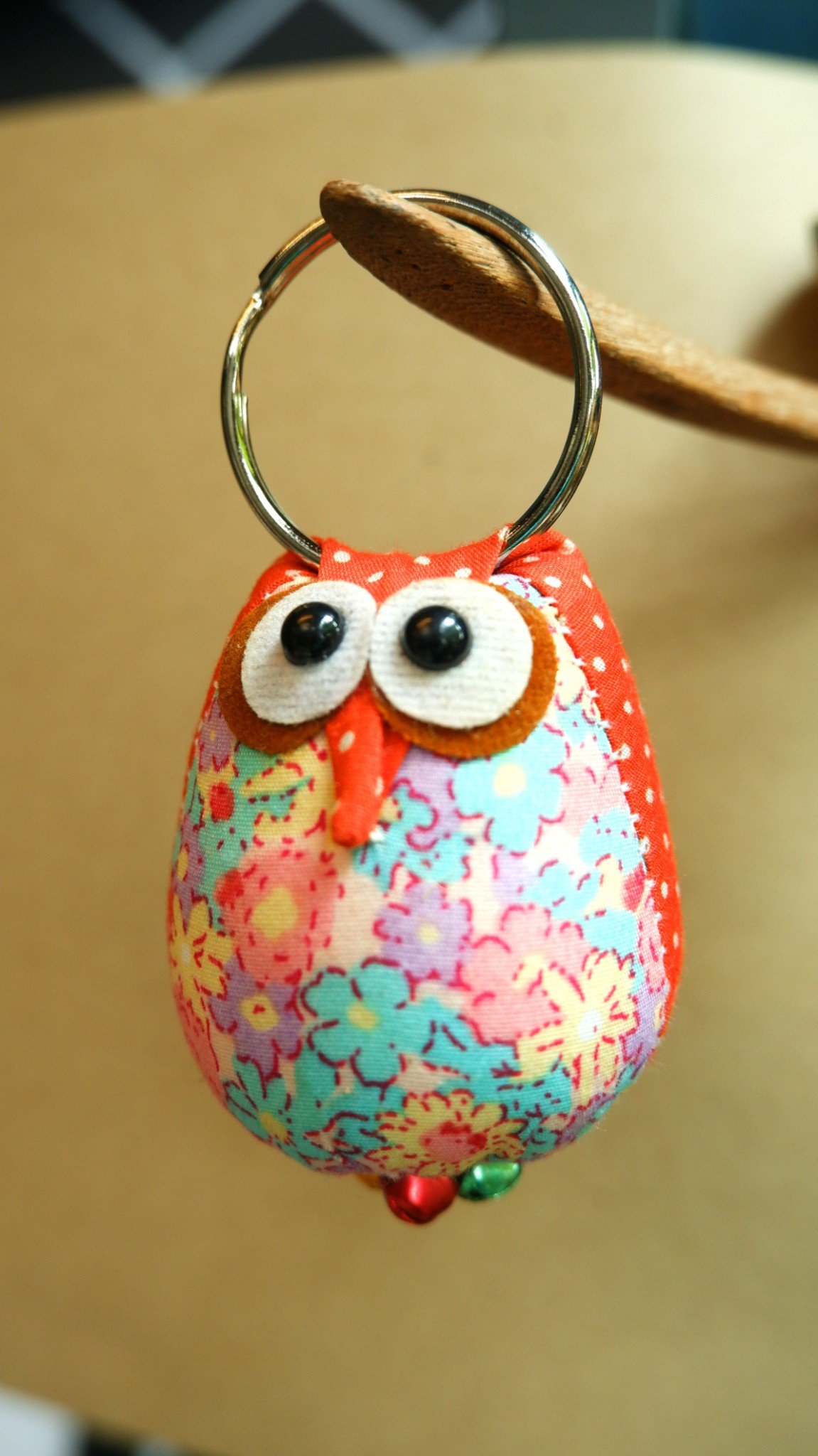พวงกุณแจนกฮูกผ้าลายจุด-ส้ม