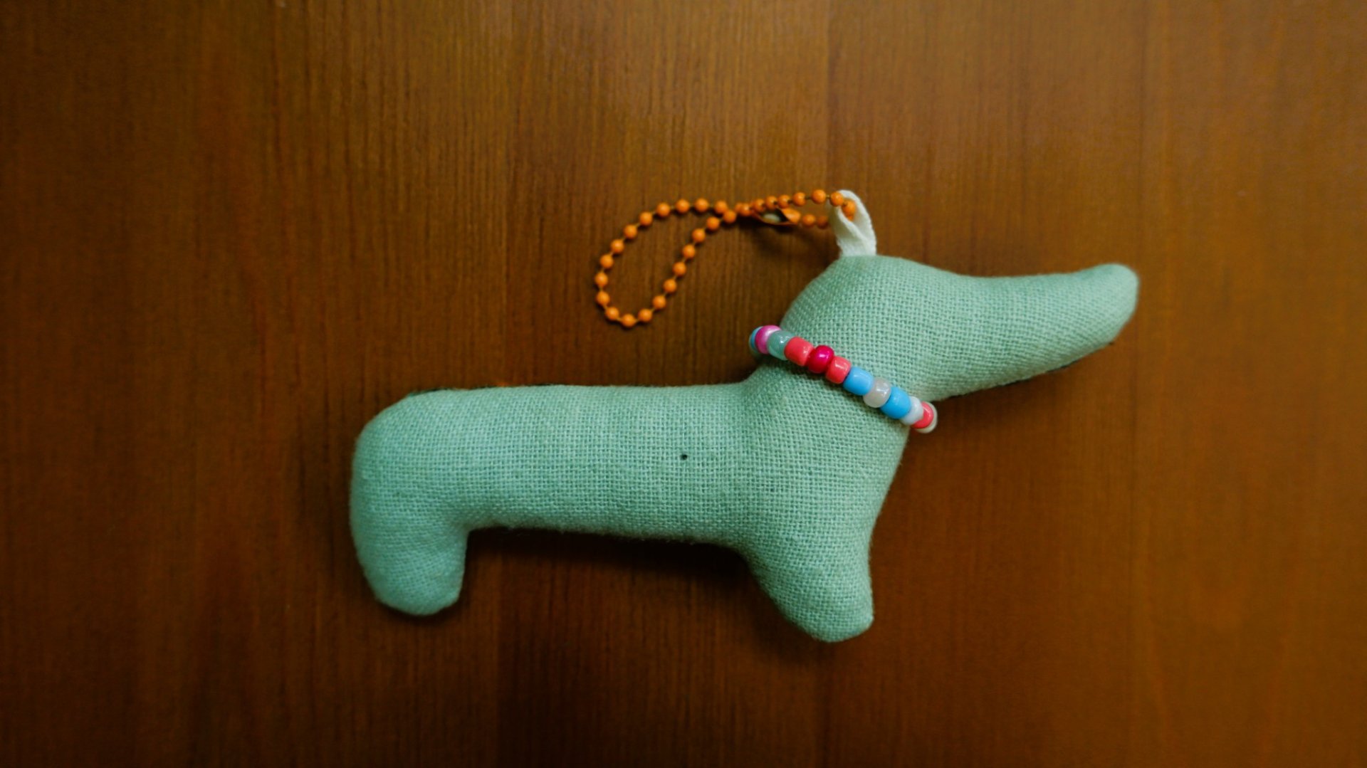 พวงกุณแจปัก หมาเขียว สายส้ม