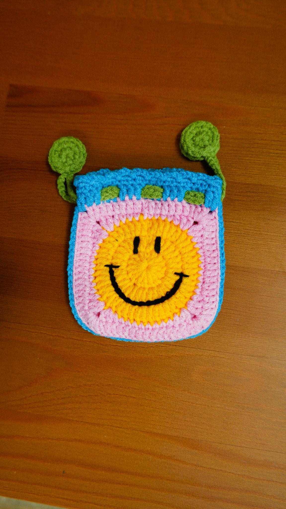 กระเป๋าถักหน้ายิ้มเหลือง-ม่วง