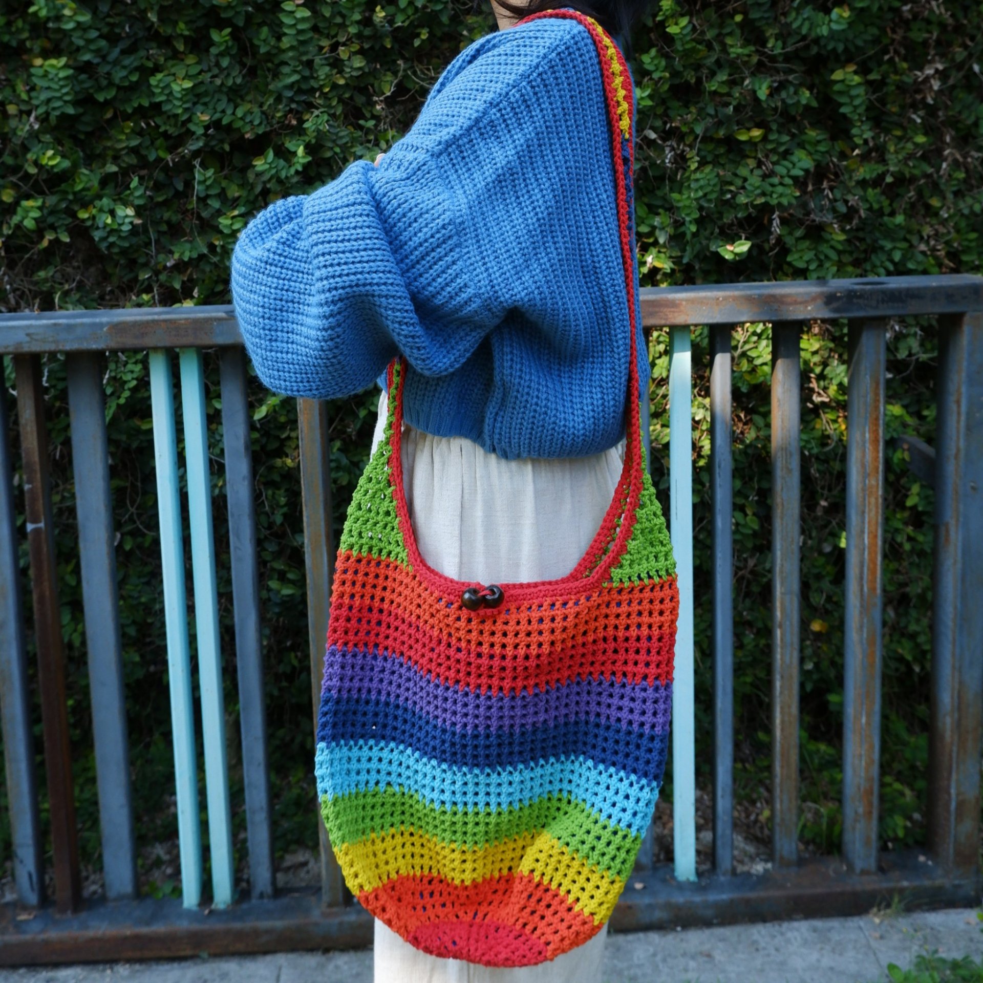 กระเป๋าสะพายข้างถักสีรุ้ง