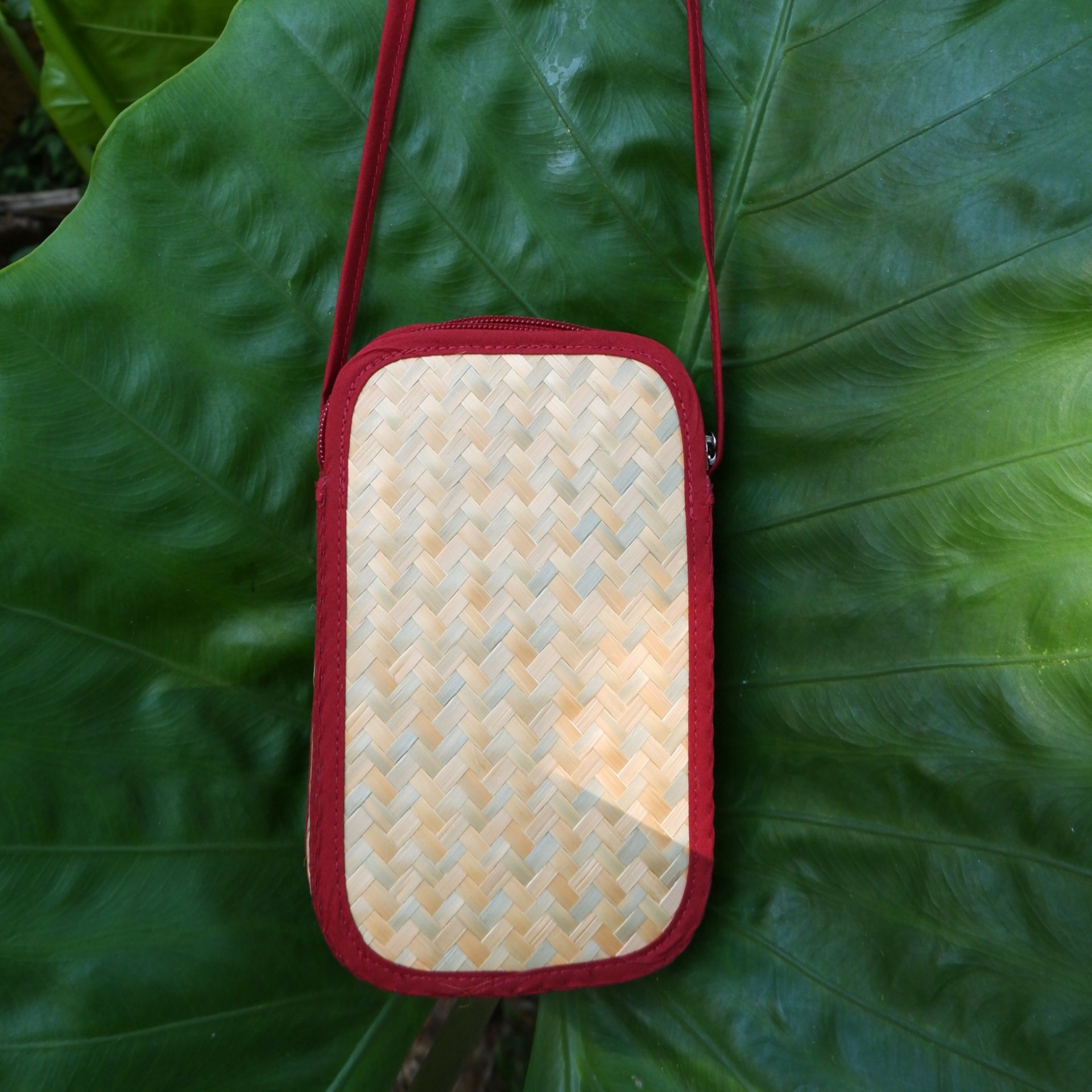 กระเป๋าสานสะพายข้าง ตะขอเกี่ยว ทรงตั้ง ขอบแดง