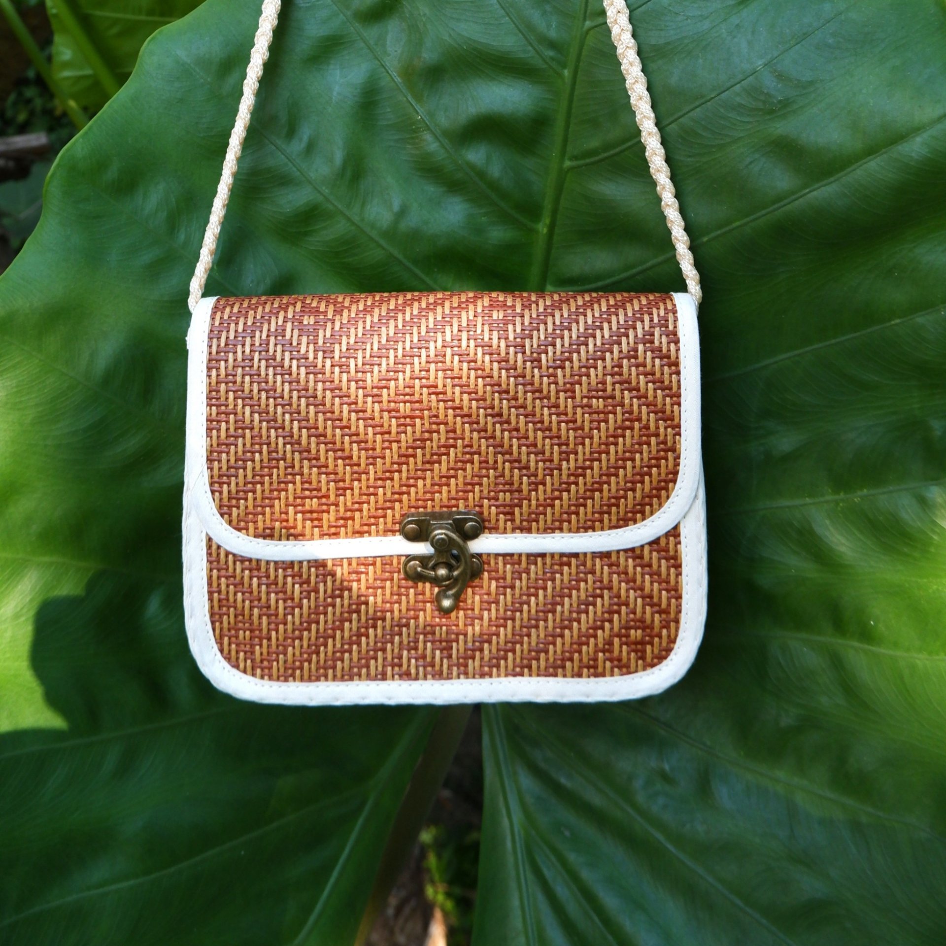 กระเป๋าสานสะพายข้าง ตะขอเกี่ยว ขอบขาว